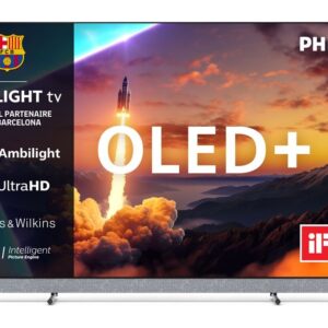 Tv oled+ ambilight philips 65oled910 164 cm 4k uhd 2025 gris métal