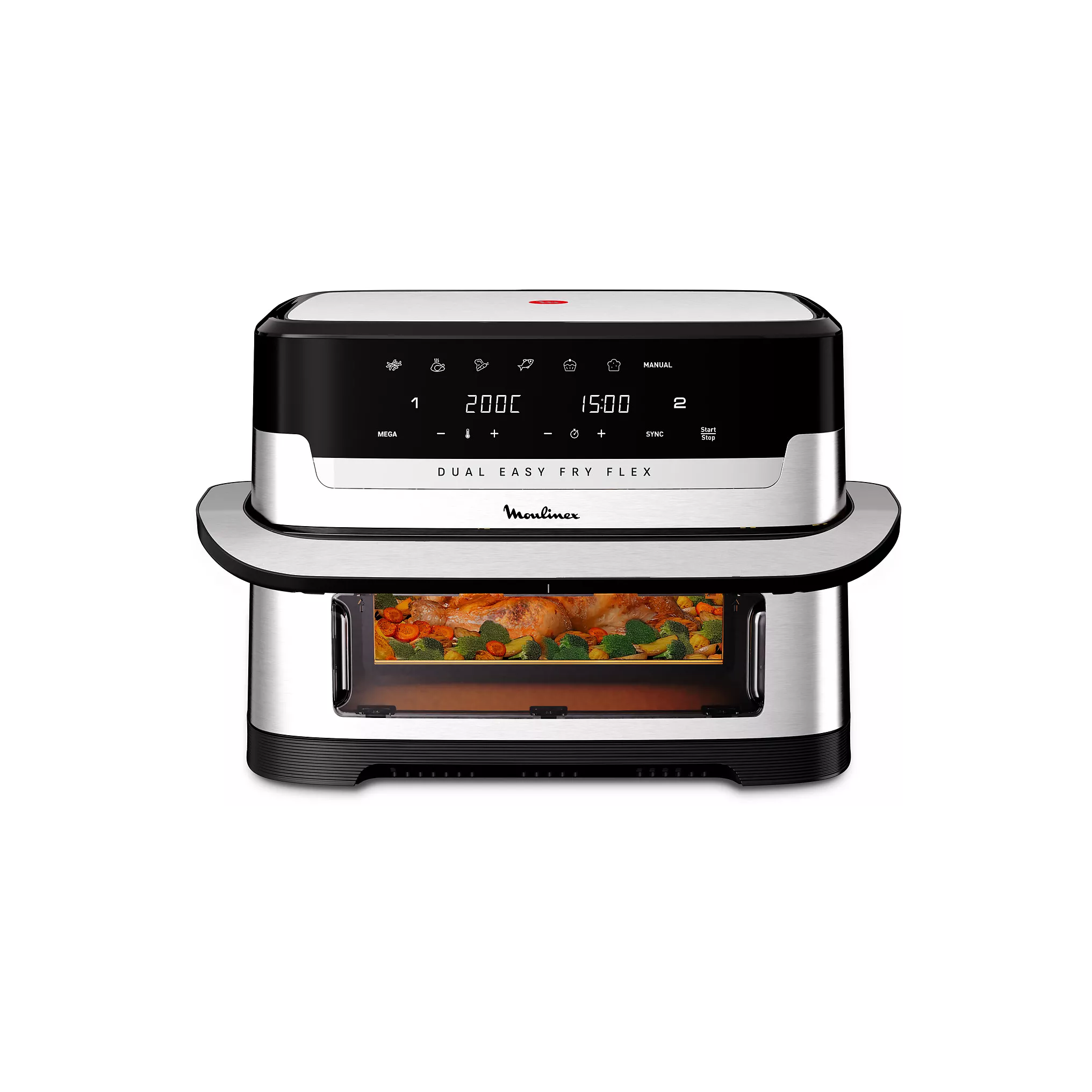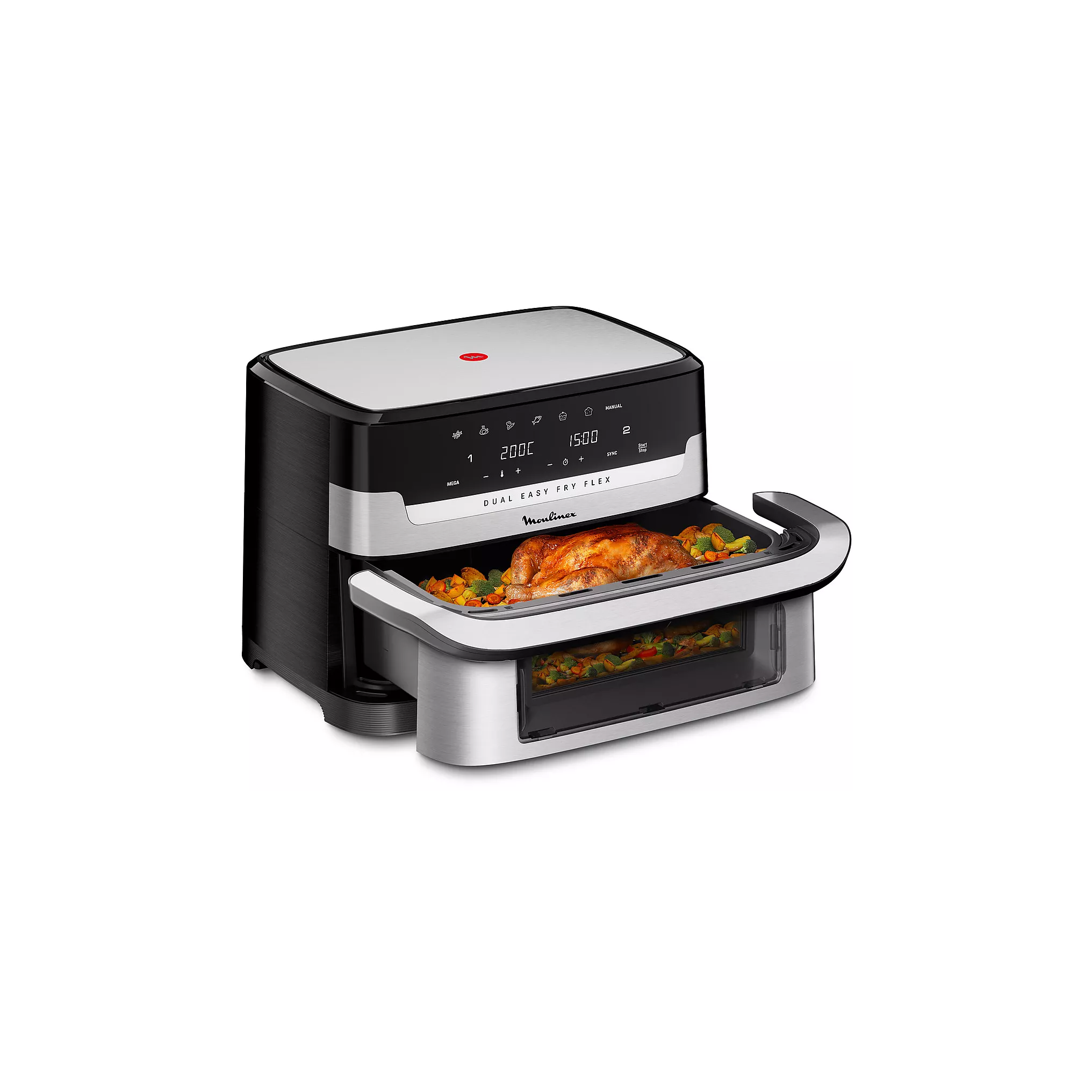 L’Easy Fry Dual Flex de Moulinex offre une flexibilité exceptionnelle avec ses deux zones de cuisson indépendantes ou sa méga zone de 9 litres. Grâce au séparateur amovible, vous pouvez passer facilement d’une double zone à une méga zone, idéale pour cuisiner des pièces volumineuses ou des plats en grande quantité tels que des lasagnes, des frites ou deux poulets entiers côte à côte. Cette polyvalence permet de préparer des repas complets pour jusqu’à huit personnes, rendant cet appareil indispensable pour les familles ou les repas entre amis.