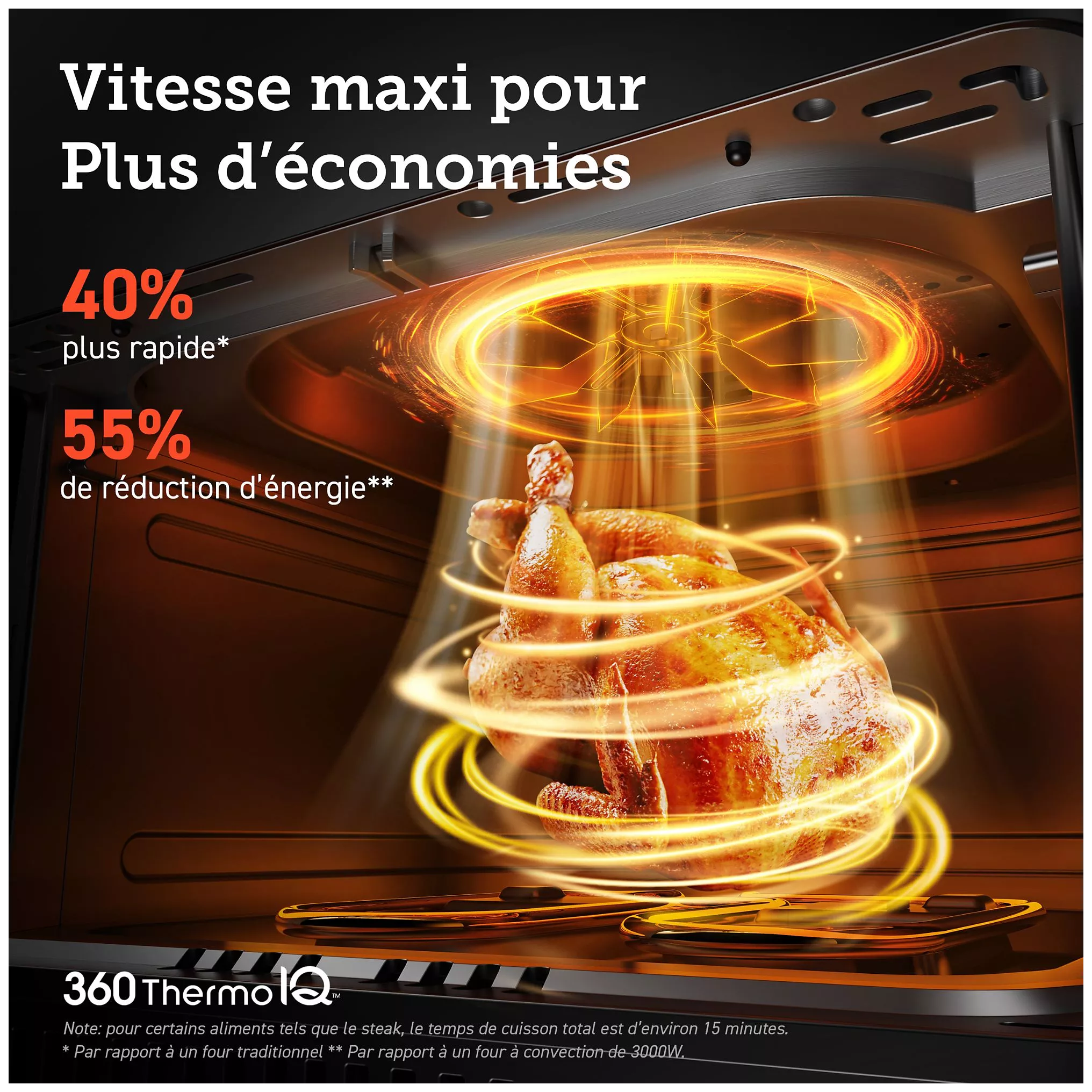 Le réglage de la température de 75 à 205 °C de l’appareil assure des résultats parfaits pour toutes vos recettes. Grâce à un écran digital et aux 11 programmes prédéfinis, vous pourrez préparer une large variété de plats en quelques instants. Le plus : plus la puissance de l’appareil est élevée, plus son temps de chauffe se réduit !