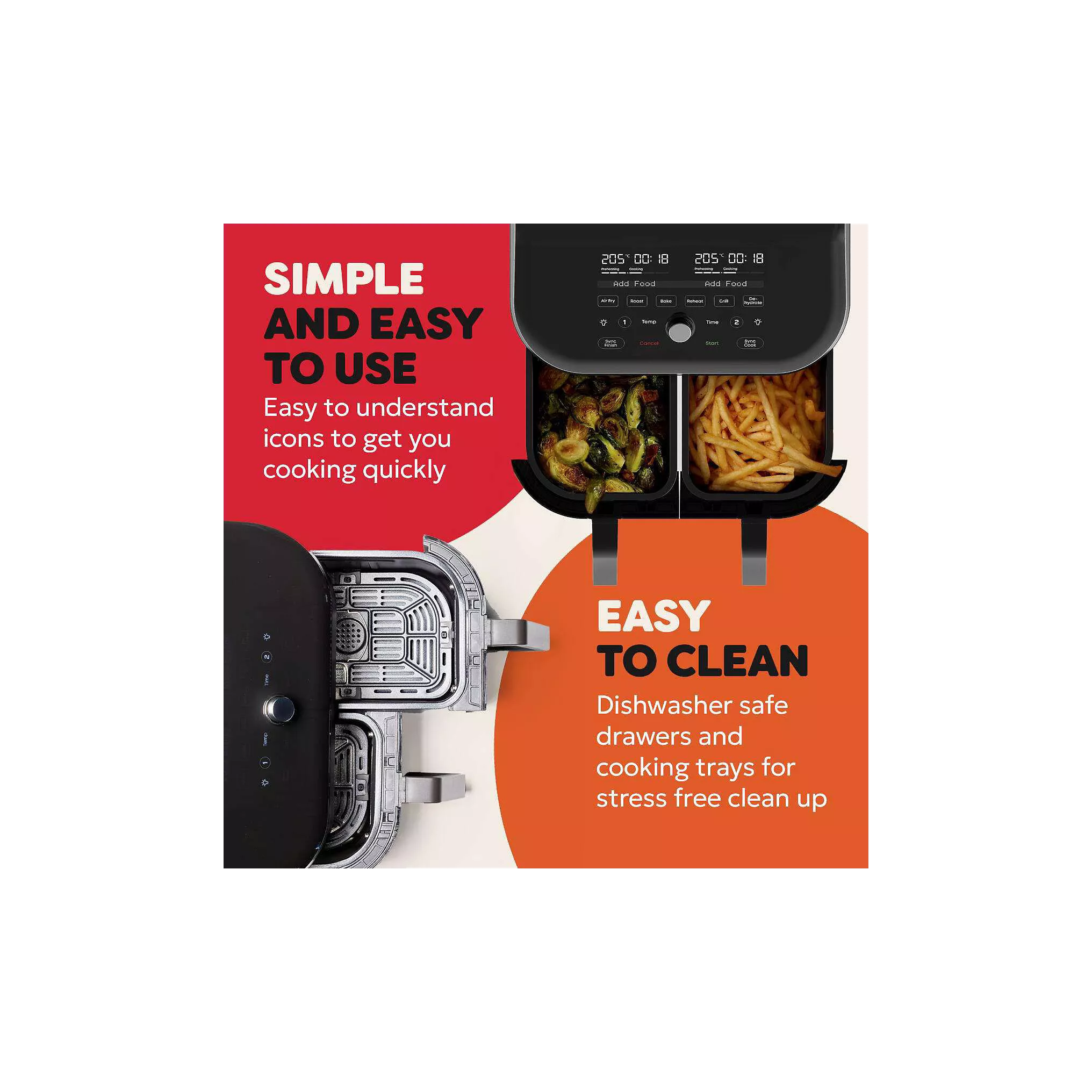 - Capacité totale : 7,6 L – Frites : 1,2 – 2 kg