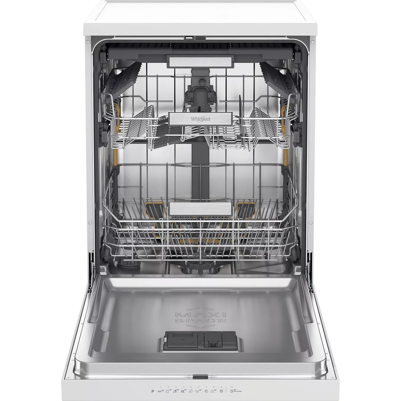 Le WHIRLPOOL W7FHP43 est équipé de la cuve MaxiSpace, offrant 10% d’espace supplémentaire pour accueillir plus de vaisselle. La fonctionnalité PowerClean Pro utilise des jets haute pression pour éliminer les salissures tenaces, libérant ainsi 30% d’espace de rangement supplémentaire dans le panier inférieur. Ce lave-vaisselle propose 10 programmes, dont un mode Eco à 50°C et un programme intensif à 65°C, ainsi que des options pratiques comme le départ différé et le verrouillage enfant. Avec un niveau sonore de 43 dB, il garantit un fonctionnement silencieux, idéal pour une utilisation quotidienne.
