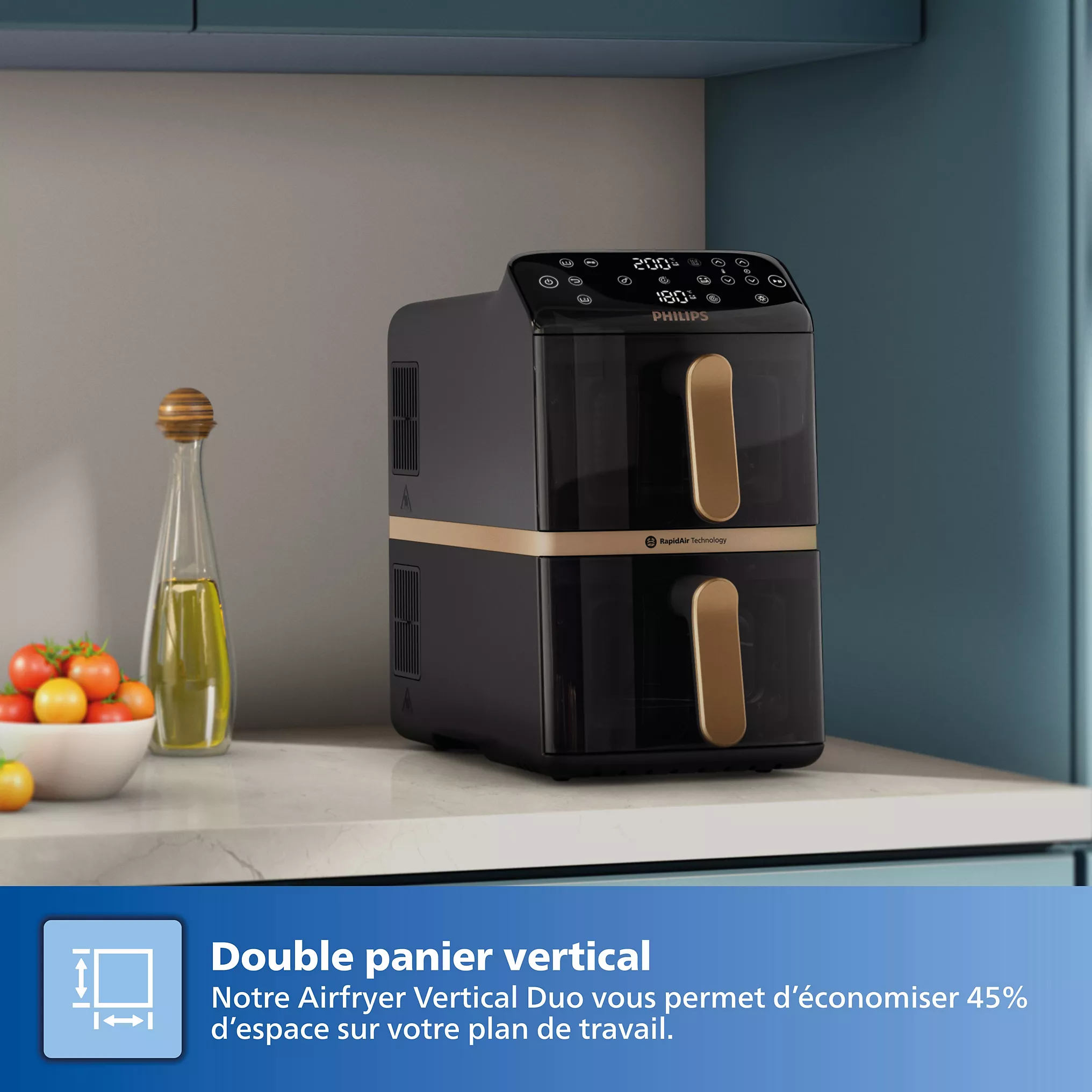 Friteuse sans huile PHILIPS Airfyer Vertical Duo NA462/70Design compact et capacité généreuse