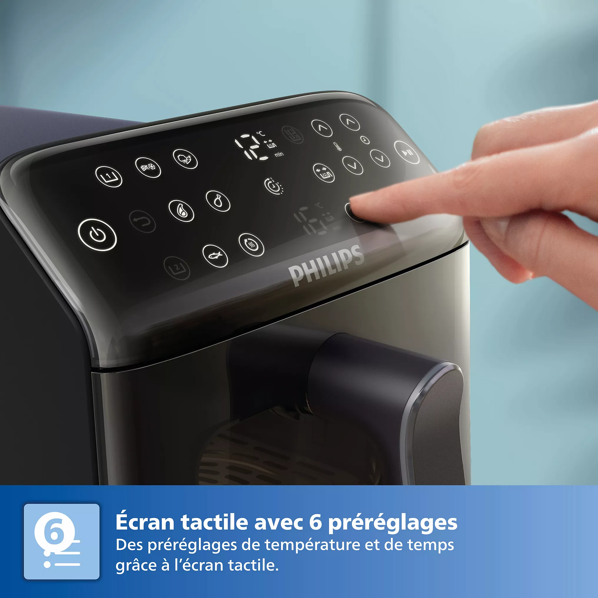 Équipé d’un écran numérique tactile, l’Airfryer Philips propose 6 préréglages et 13 modes de cuisson, facilitant ainsi la préparation de vos recettes. La technologie RapidAir assure une circulation uniforme de l’air chaud, offrant des plats croustillants et savoureux avec jusqu’à 90 % de matière grasse en moins. Les fonctions synchronisation et maintien au chaud permettent de servir vos plats simultanément, tandis que la fonction copie simplifie les réglages en dupliquant les paramètres d’un panier à l’autre. Compatible avec l’application HomeID, cet appareil vous guide à travers des recettes adaptées, rendant chaque repas une expérience culinaire réussie. Le revêtement en céramique sans PFAS et les pièces compatibles lave-vaisselle garantissent un entretien facile et rapide.