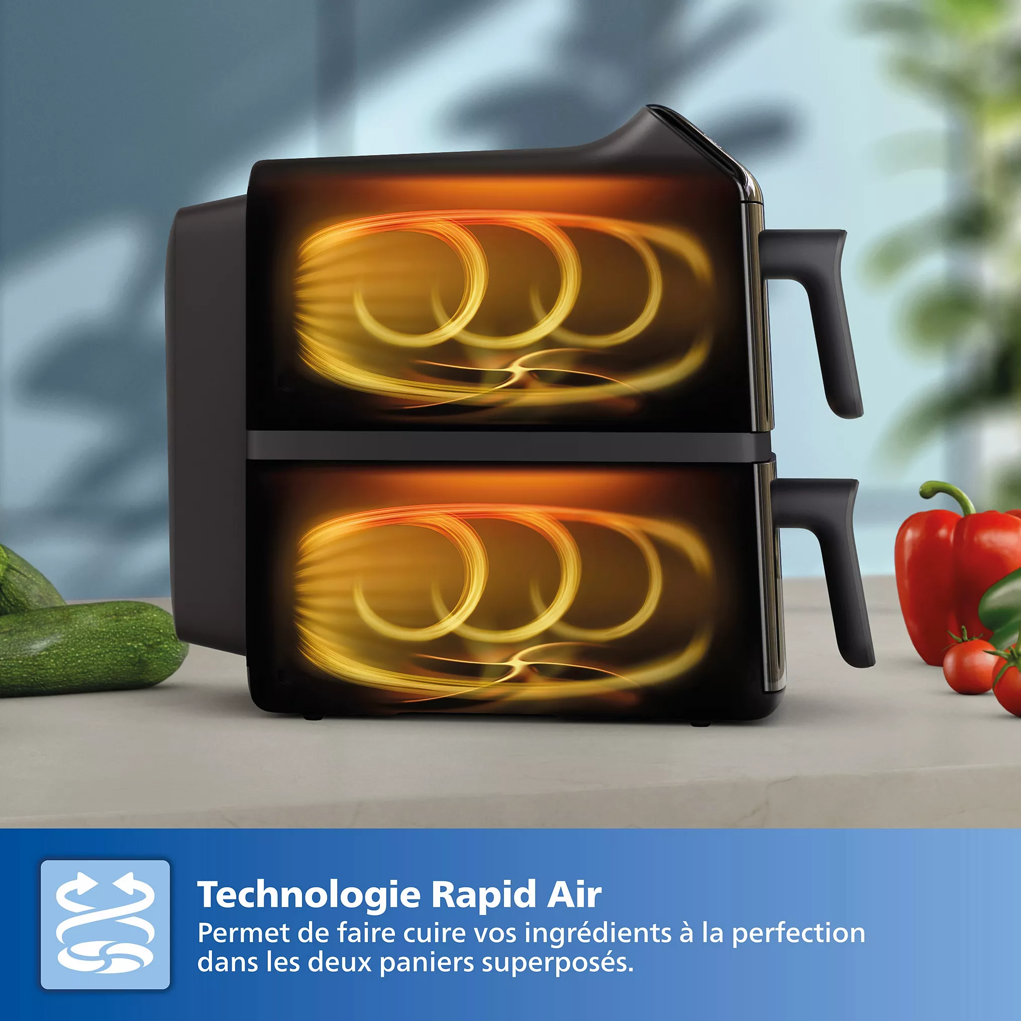 Friteuse sans huile PHILIPS Airfyer Vertical Duo NA462/70Technologie avancée pour une cuisson simplifiée