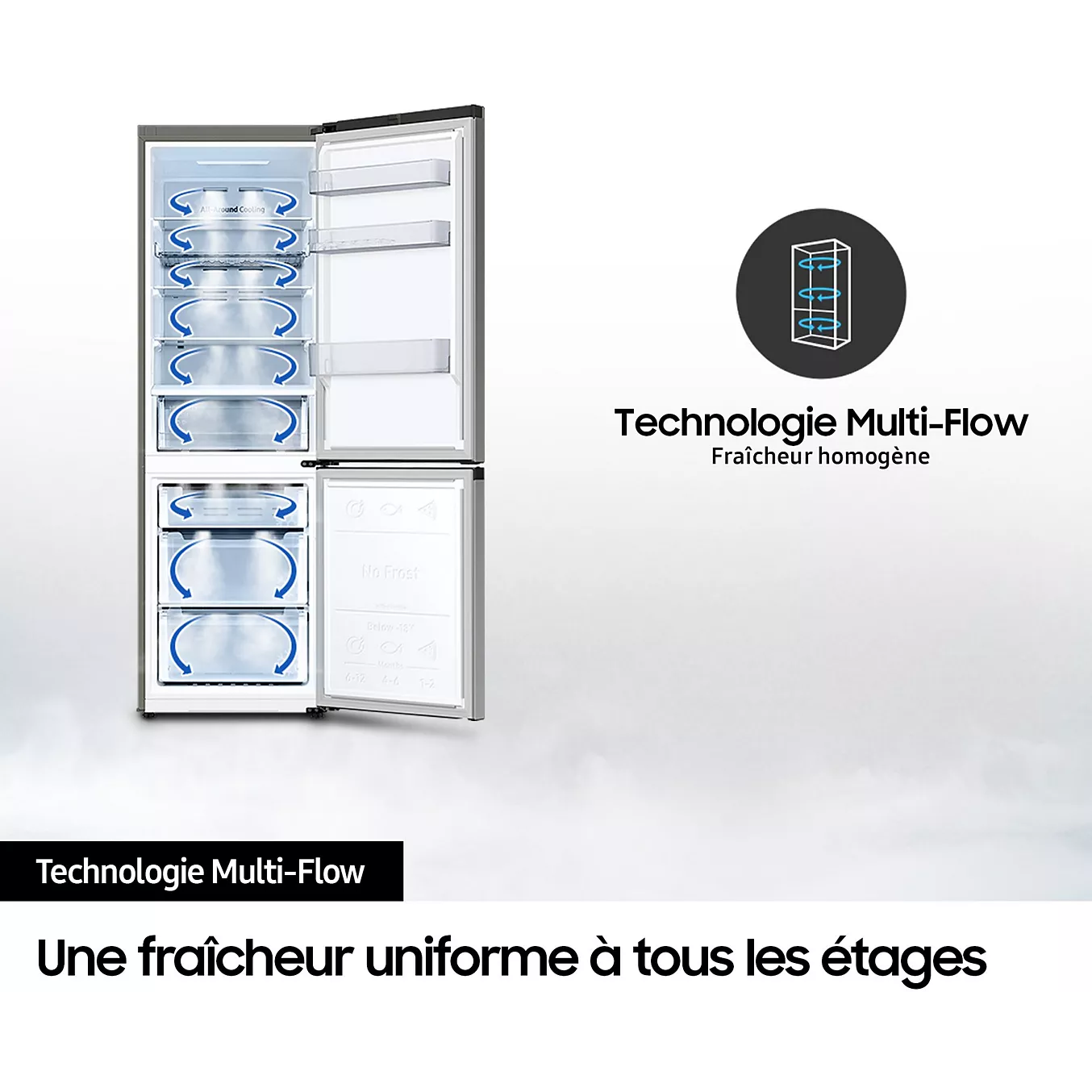 Gage d’efficacité énergétique tout en maintenant des performances de réfrigération exceptionnelles, le moteur Inverter décuplera la durée de vie de votre réfrigérateur SAMSUNG RB38C600DSA tout en vous offrant une utilisation des plus discrètes. Et pour un entretien facilité de votre appareil, son système Froid Ventilé éliminera la corvée du dégivrage.
