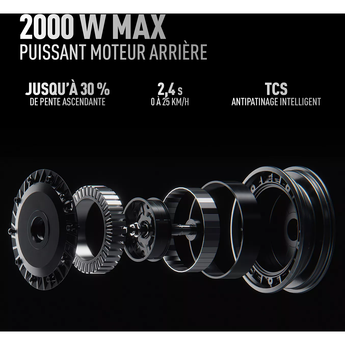 La trottinette électrique NINEBOT Max G3 E se distingue par son moteur puissant de 2000 W, offrant une vitesse maximale de 25 km/h et une capacité de montée impressionnante de 30 %. Grâce à la technologie SegRange™, elle assure une autonomie allant jusqu’à 80 km, idéale pour les trajets urbains et les escapades en pleine nature. Son système de gestion de la batterie BMS 2.0 assure une performance optimale et sécurisée, tandis que la fonction Flash Charge permet une recharge rapide en seulement 3,5 heures.
