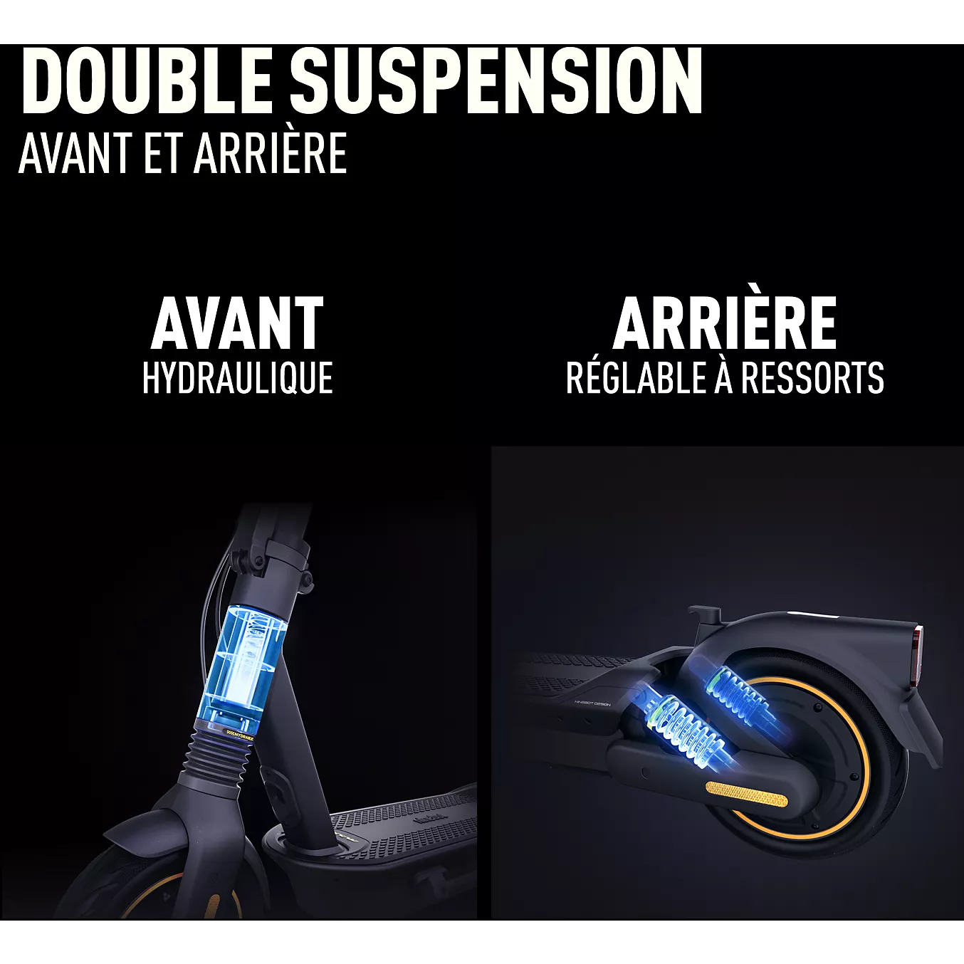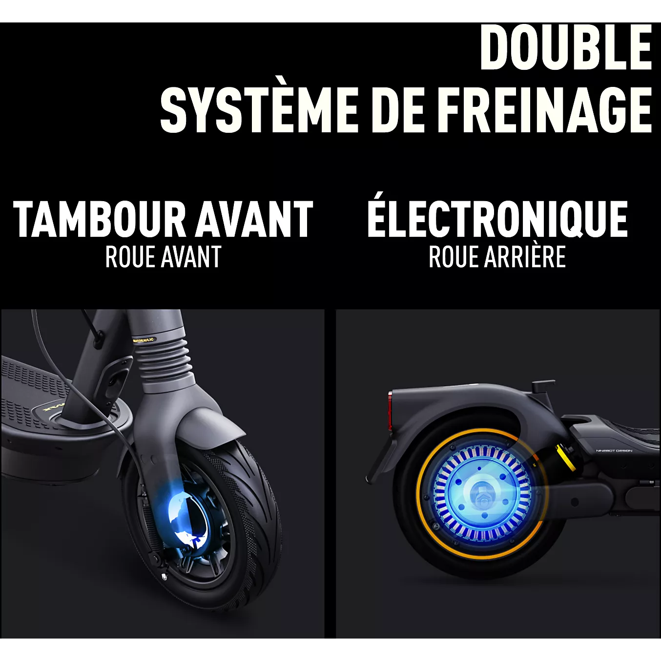 Renforcez votre sécurité lors du freinage grâce au frein à tambour avant et au frein électronique arrière régénératif qui assureront un arrêt net et fiable. Équipée de feux avant et arrière à LED et d’un feu de freinage pour assurer votre tranquillité dans l’obscurité, votre trottinette électrique NINEBOT Max G2E sera également pourvue de réflecteurs avant, latéraux pour une meilleure visibilité.